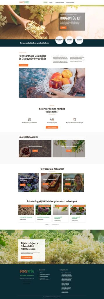 - Egy profi, modern weboldal létrehozása, amely bemutatja a Bodzavirág Kft szolgáltatásait (gyümölcs- és gyógynövény-felvásárlás).