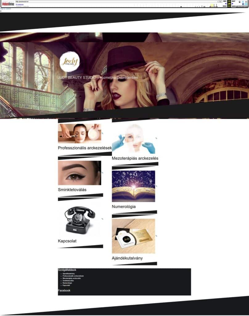 Nagy Judit debreceni kozmetikus, a Judy Beauty Stúdió tulajdonosa, azzal a céllal keresett meg bennünket, hogy meglévő, elavult weboldalát új, professzionális formába öntsük. Bár a korábbi oldal is bemutatta a szolgáltatásokat, megjelenésében és funkcionalitásában már nem felelt meg a mai elvárásoknak. A cél egy olyan modern, letisztult és bizalmat keltő weboldal létrehozása volt, amely hűen tükrözi Judit szakmai hitelességét és a Judy Beauty szalon eleganciáját.