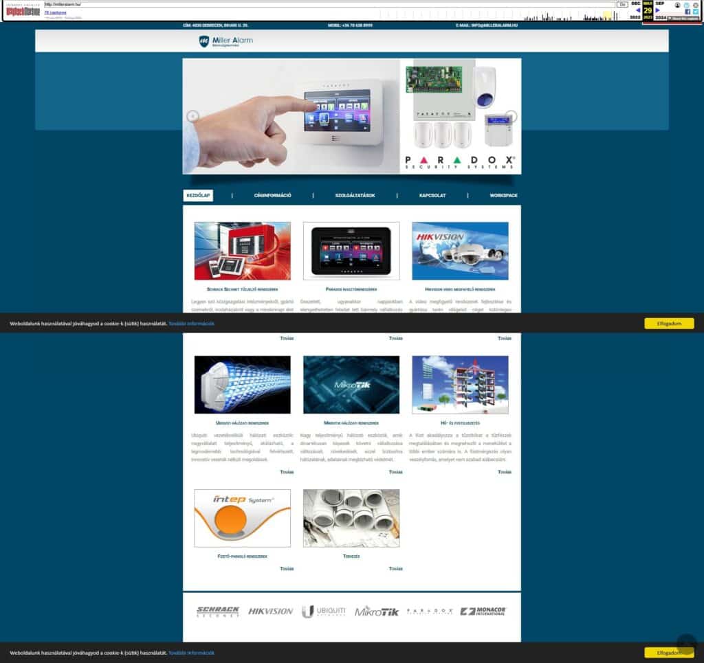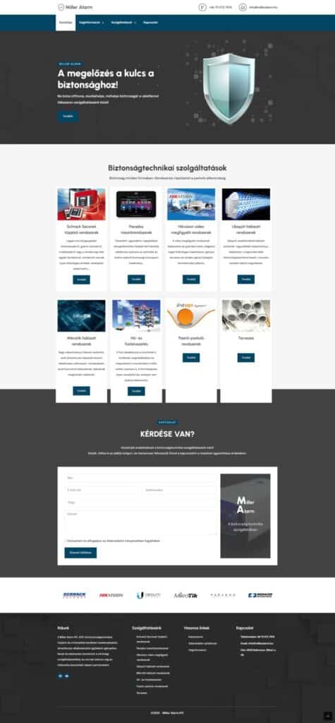 A Miller Alarm Kft., 2012 óta működő debreceni székhelyű biztonságtechnikai vállalkozás, azzal a céllal keresett meg bennünket, hogy elavult weboldalukat modern, felhasználóbarát és professzionális megjelenésűre cseréljük. A cég tevékenységei közé tartozik a tűzjelző rendszerek, riasztórendszerek, videómegfigyelő rendszerek, hálózati megoldások, hő- és füstelvezetés, valamint fizető-parkoló rendszerek tervezése és kivitelezése. Az új weboldal célja az volt, hogy tükrözze a cég szakértelmét, megbízhatóságát és a szolgáltatások széles skáláját.